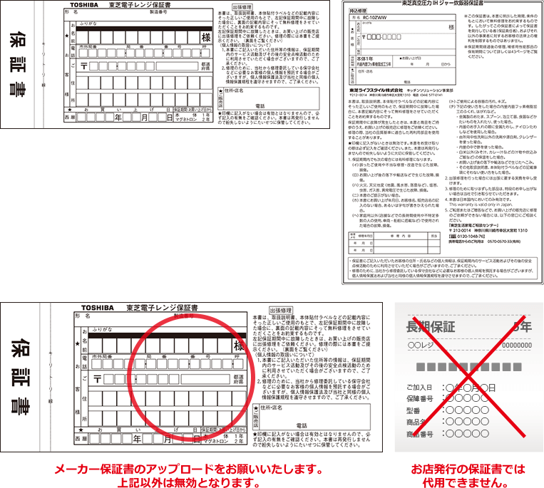 - メーカー保証書は形名・製造番号表記のあるもの(メーカー保証書に記載欄が無ければ不要)をご用意ください。
